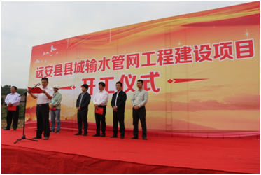 9月29日上午,公司中標的宜昌市遠安縣縣城輸水管網(wǎng)工程在管線的起點舉行了開工儀式。遠安縣縣委副書記、縣長蘇海濤,縣委常委、副書記張俊,縣委常委、常務副縣長肖鵬飛,縣政協(xié)副主席、工程建設副指揮長梅昌許,公司總經(jīng)理鄧永馳,以及遠安縣縣直相關(guān)單位,工程監(jiān)理、工程設計等...