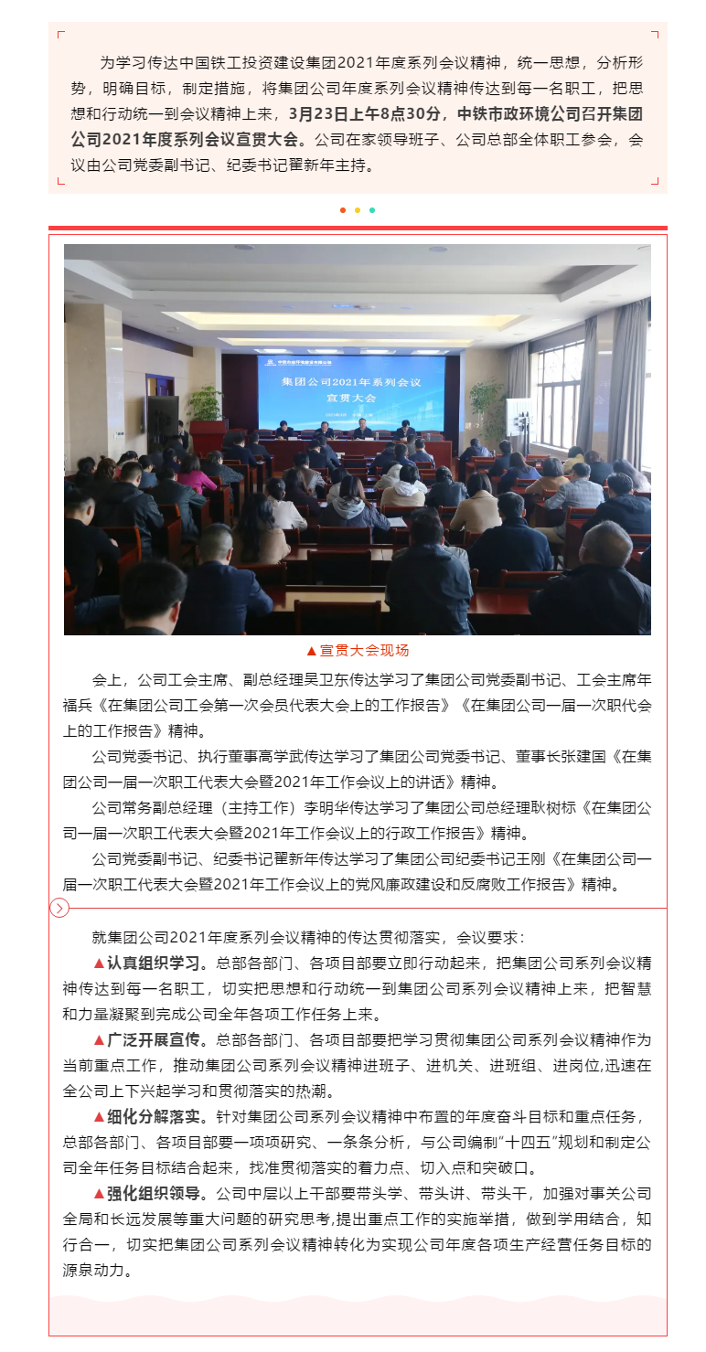 迅速行動!中鐵市政環(huán)境公司學(xué)習(xí)傳達集團公司2021年度系列會議精神
