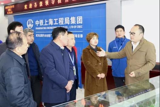3月7日,河南省人大財經委副主任劉建功一行來到由中鐵上海工程局集團市政公司承建的北湖污水廠項目調研。